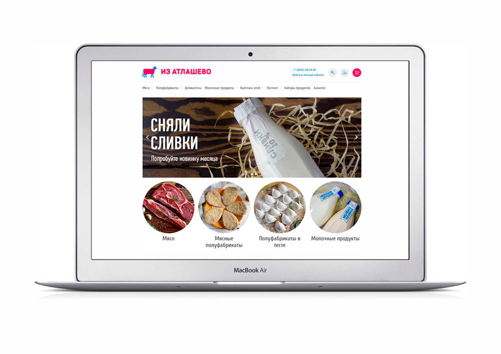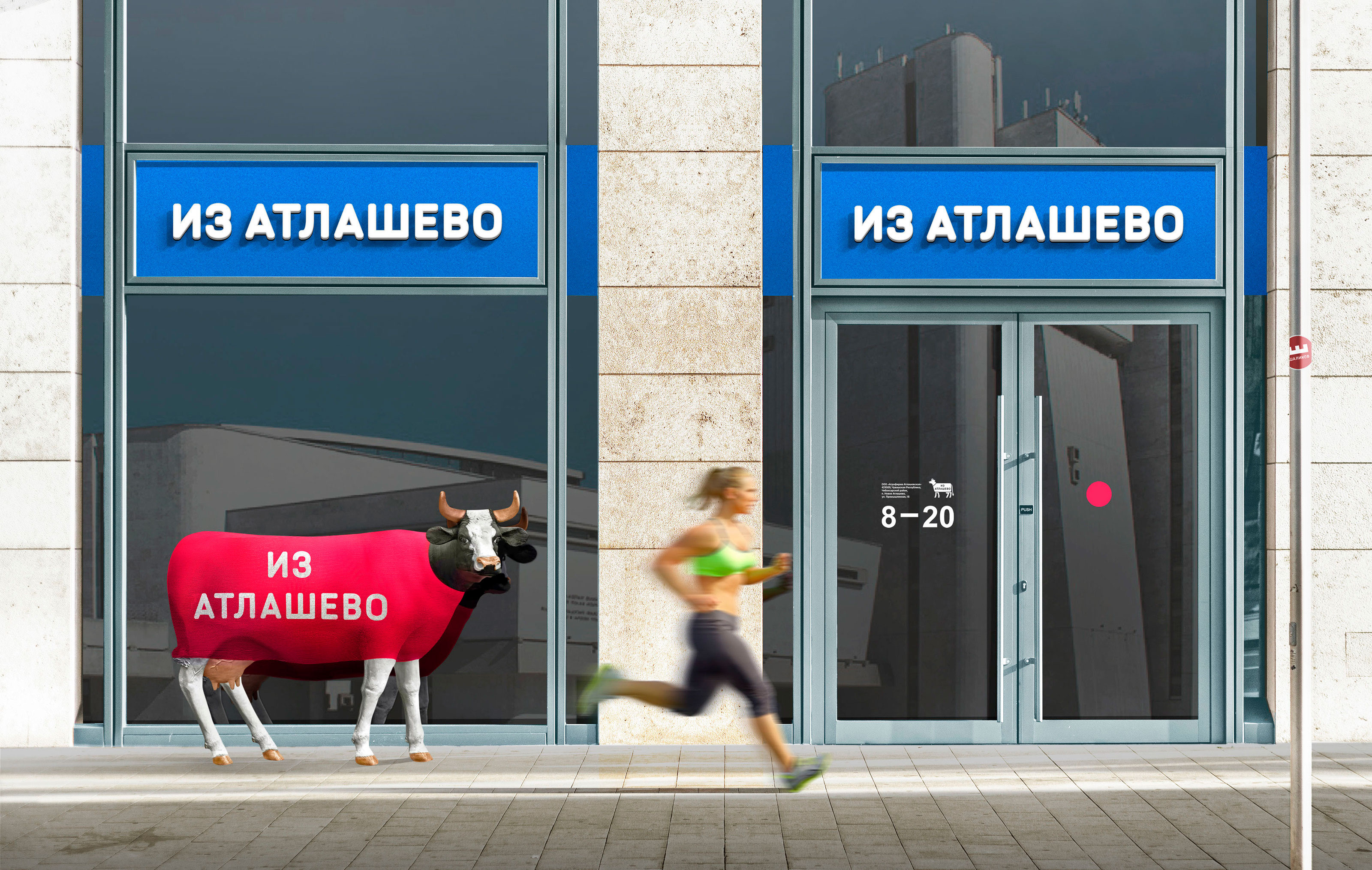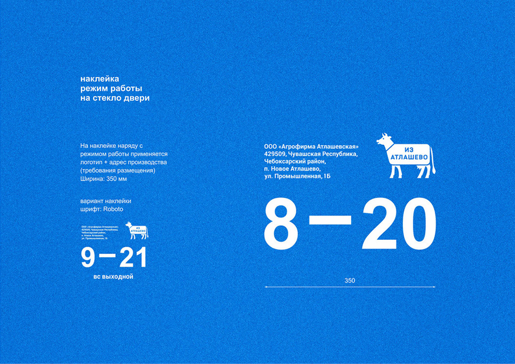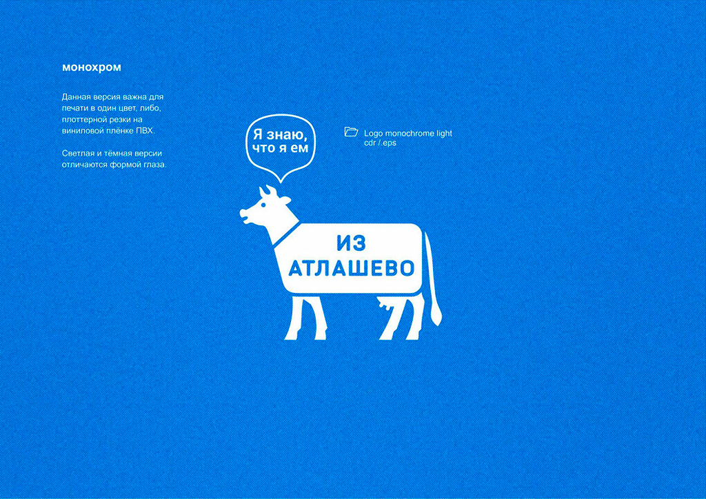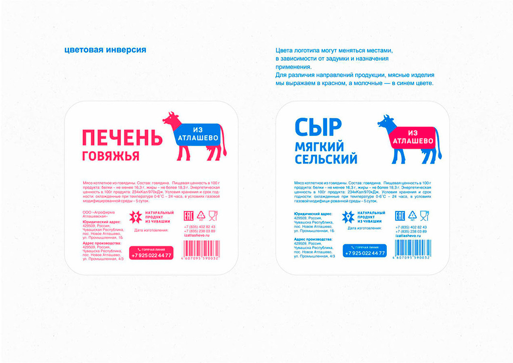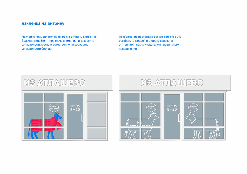 «Из Атлашево» — бренд фермерских магазинов в Чувашии. Основная продукция — молочные и мясные изделия. Для заказчика разработан фирстиль, включающий упаковку самих магазинов. Логотип–маскот является живой коммуникацией с покупателем: он рассказывает о продукции, условиях содержания животных, полезных качествах и преимуществах продуктов.